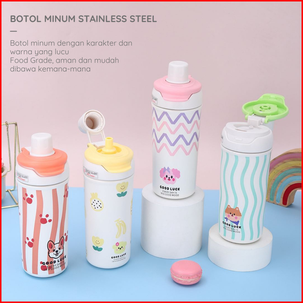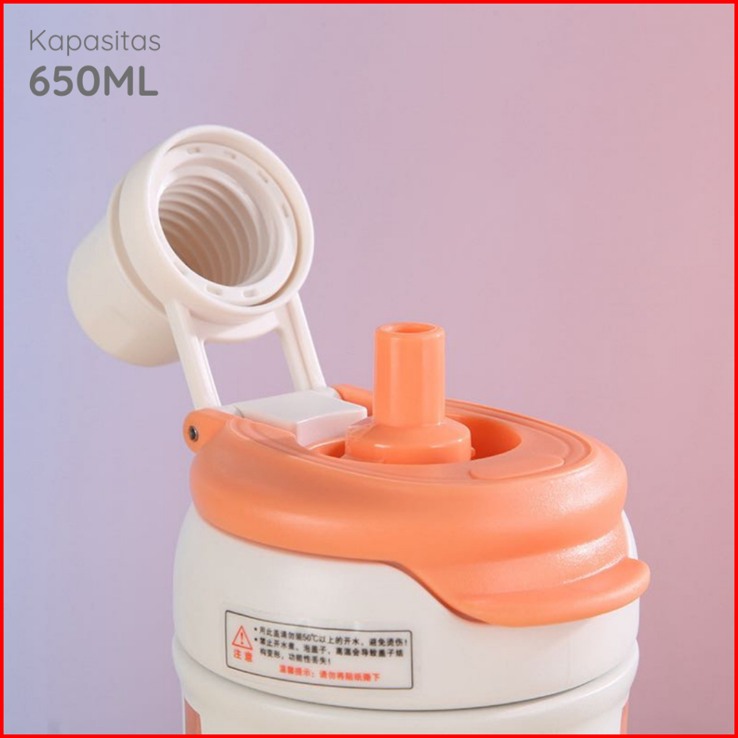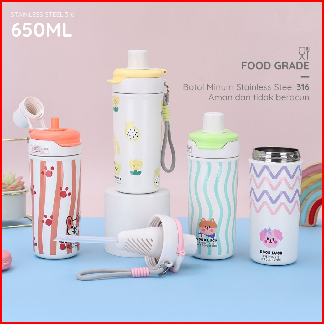 Funnycook Tumbler Botol Minum Aesthetic Lucu 650ml Anti Tumpah Dan Tahan Dingin Stainless Steel 316