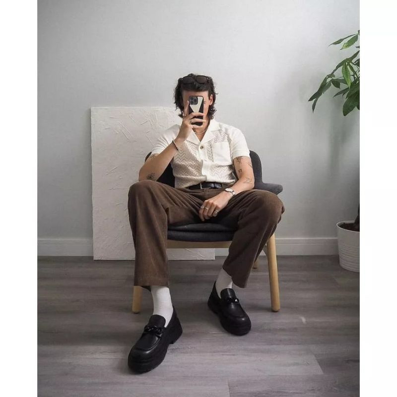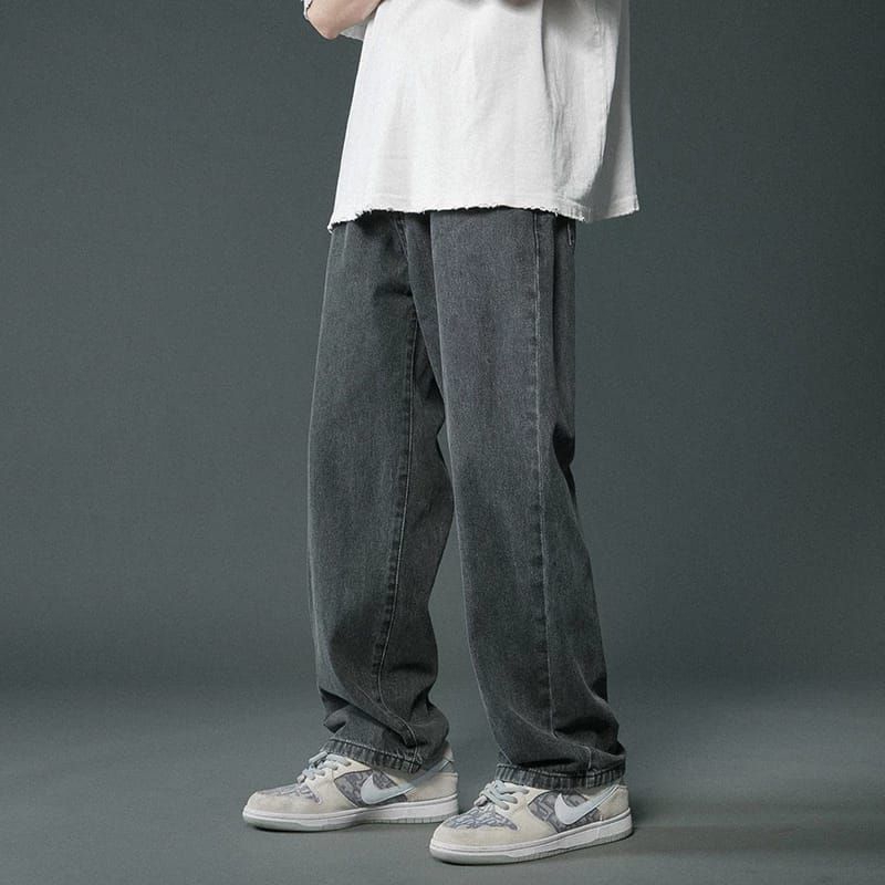 Celana jeans pria korean style jeans putih celana panjang pria kulot jeans baggy pants