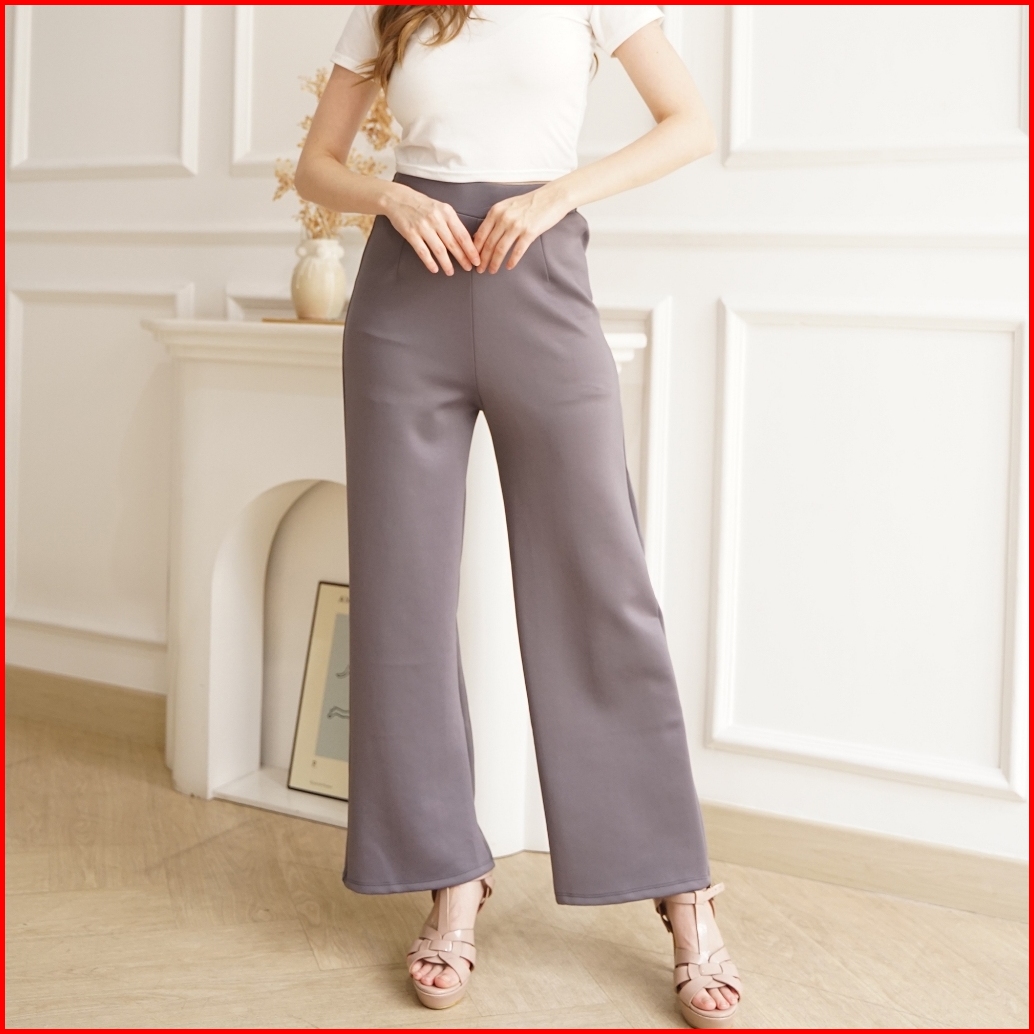 Haymeeidn - Celana Kulot Highwaist Wanita Bawahan Kulot Premium Bahan Scuba Nikola