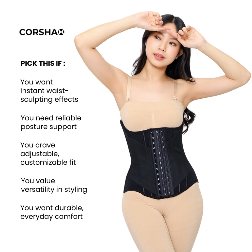 CORSHAX Duosmooth Built-In Double Compression Waist Trainer Korset Hourglass Long Torso Bahan Breathable