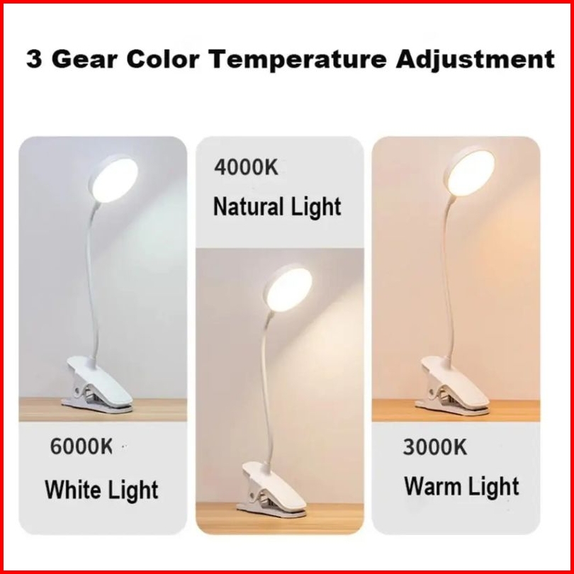Lampu Led Clip Eyelash Extension 3 Warna Kecerahan Lampu Duduk Kerja Lampu Baca Belajar Jepit Sentuh Portable