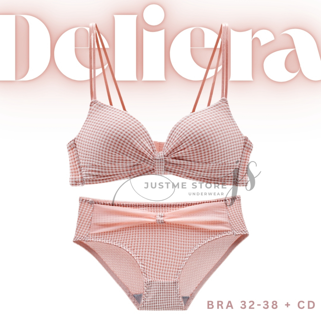 DELIERA Bra Set (BRA + CD) Tanpa Kawat Push Up Size 34-38 Cup AB Pakaian Dalam Wanita JUSTME
