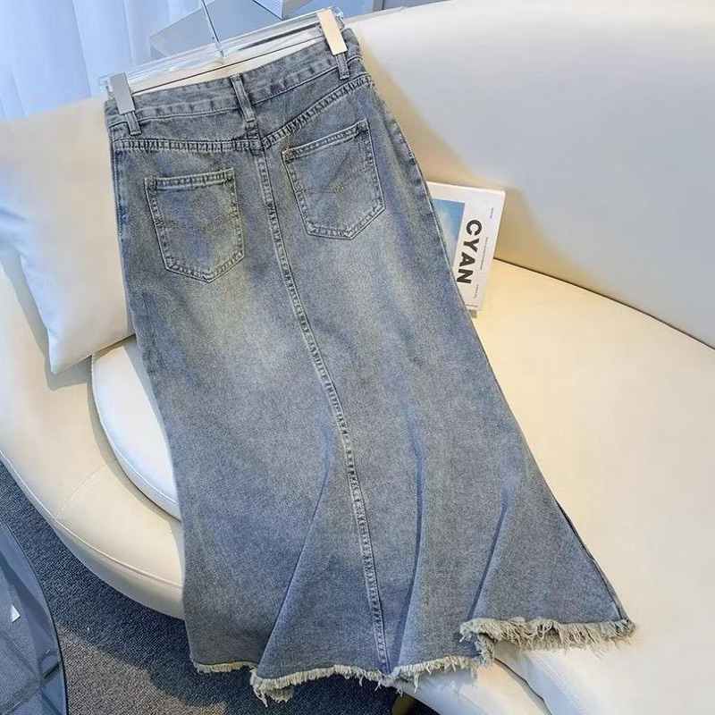 Rok Jeans Panjang |kekinian.ftory(Ready stok !!!) 5XL jumbo rok duyung jeans korean style rok jeans wanita panjang 7/8 w
