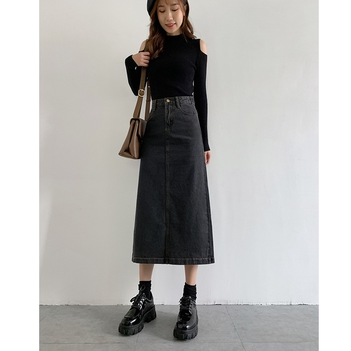 Rok Jeans Panjang Alice Rok-Highwaist Rok Jeans Wanita / Kekinian Fashion Split Denim Rok
