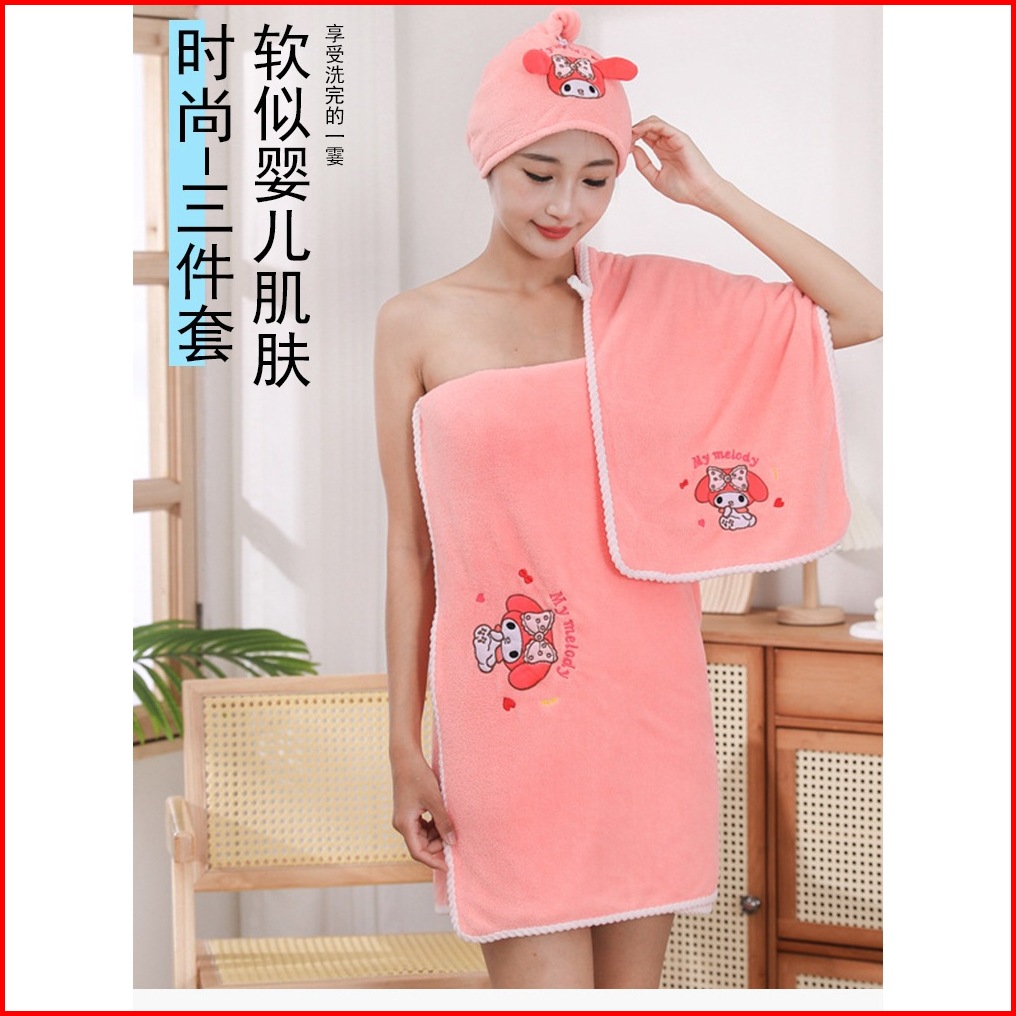 Handuk Mandi Set 3 In 1 Handuk Keramas Handuk Muka Handuk Mandi Hnaduk Kuromi