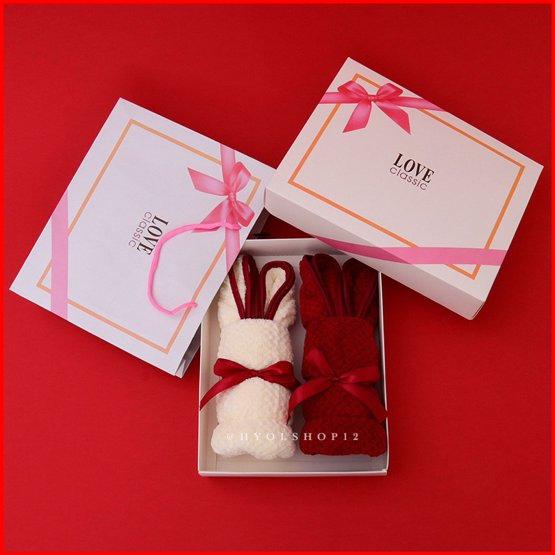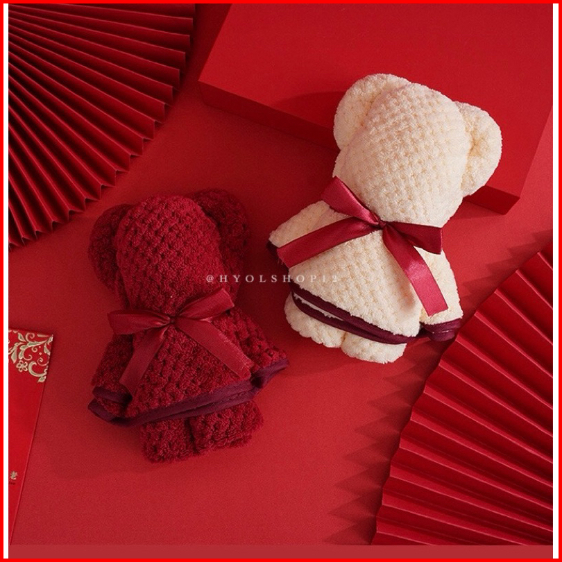 Hy.olshop12 Handuk Mandi Wajah Set 2in1 Motif Bear Rabbit Premium Cotton Tebal Halus Hadiah Souvenir Pernikahan Hampers