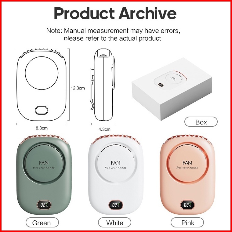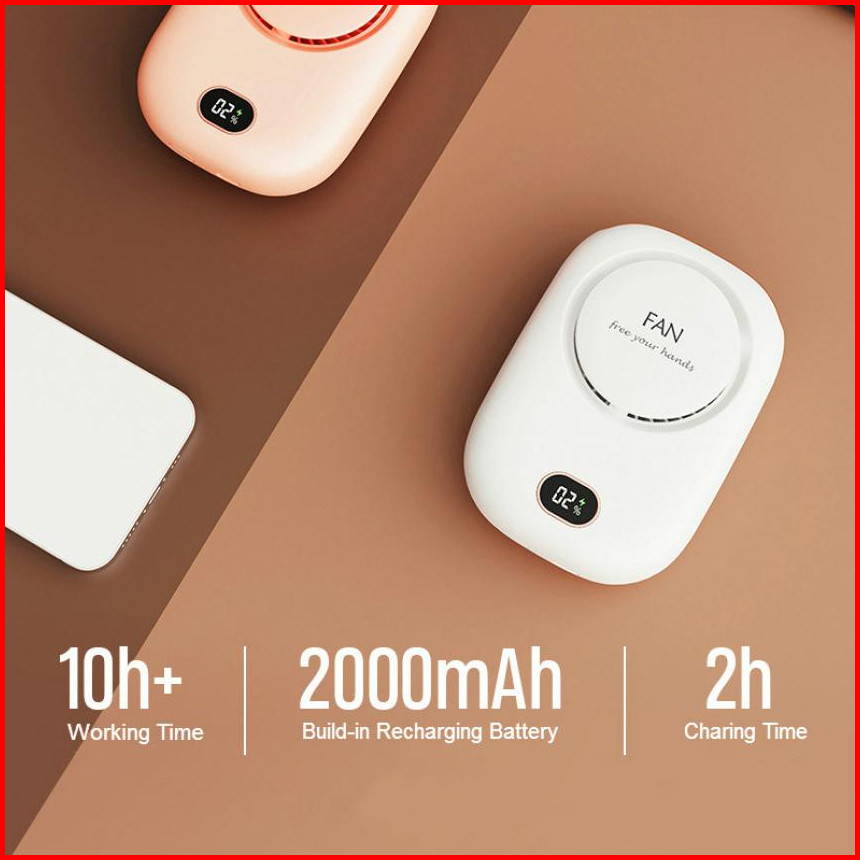 Kipas Angin Mini Portable Hanging Neck Fan 2000mah Model Gantung Leher Rechargeable Battery Display Usb