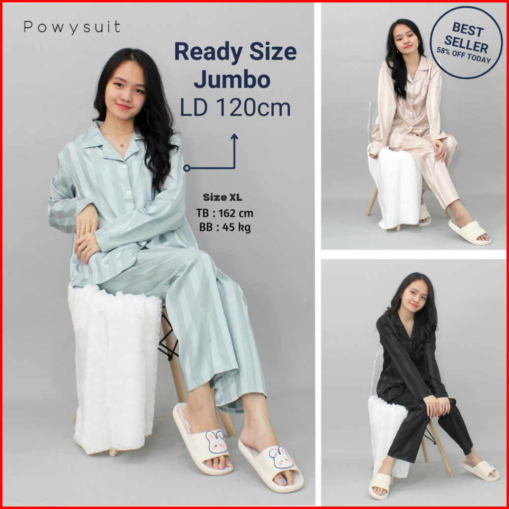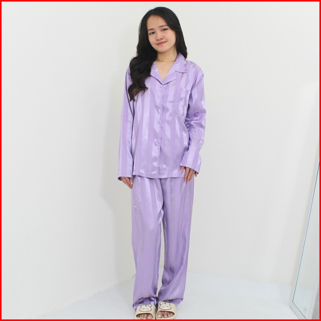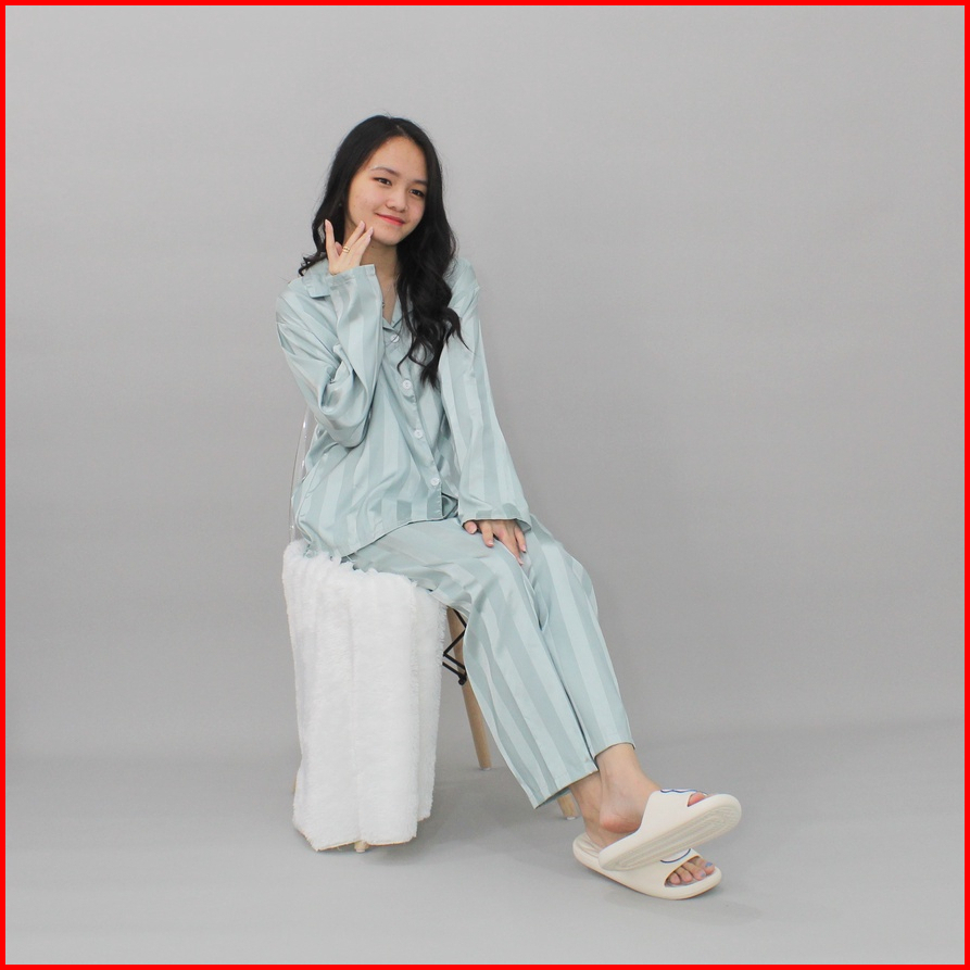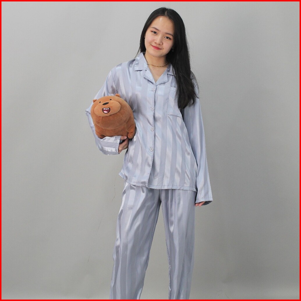 Yx Laurencia Piyama Satin Powysuit Baju Tidur Wanita Dewasa Lengan Panjang Celana Panjang