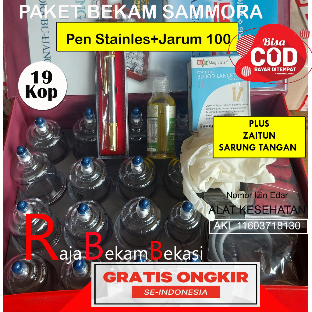 SAHI Paket Bekam Komplit Sammora 19 Premium + BONUS Pena Stainles,Jarum & Minyak Zaitun – Alat Bekam Lengkap