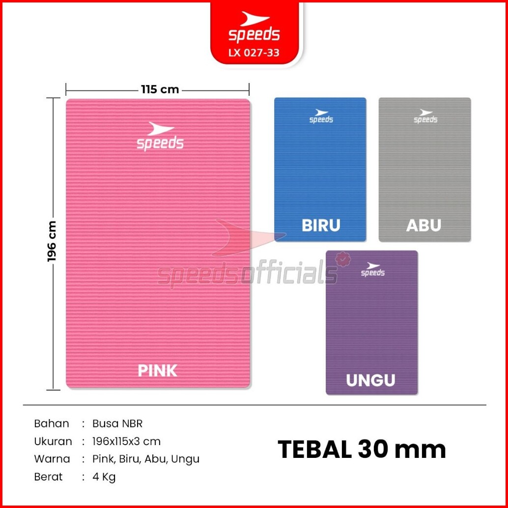Speeds Yoga Mat 196x115x30mm Anti Slip Matras Yoga Tebal Extra Besar Alas Yoga Senam Lx 027-33