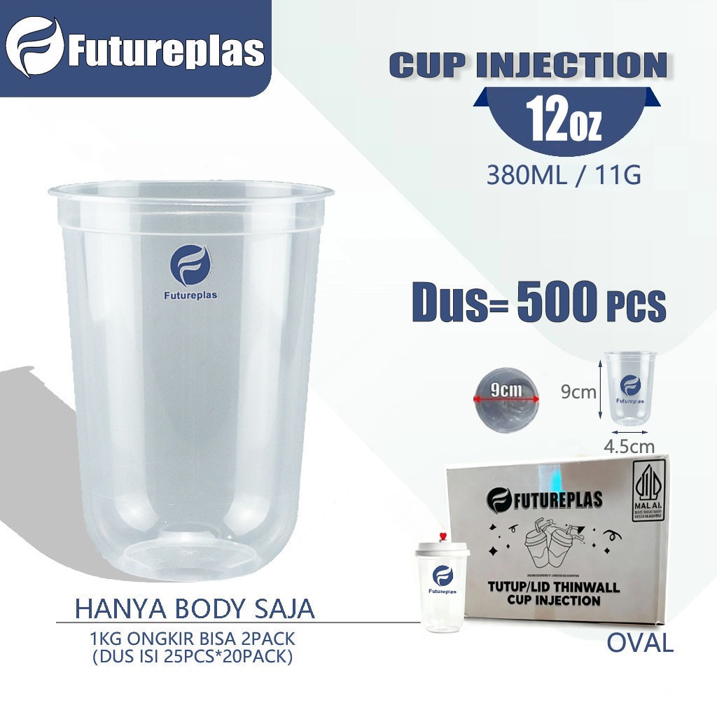 FUTUREPLAS DUS Cup Injection 12oz 380ML ISI 500 PCS / Gelas Plastik Thinwall Tebal Datar CUP PLASTIK