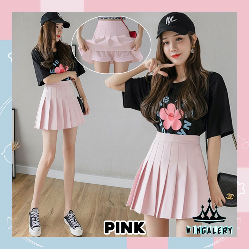 Rok Olahraga WINGALERY Rok Pendek Wanita Mini Skirt Korea Tennis Skirt With Inner 4051