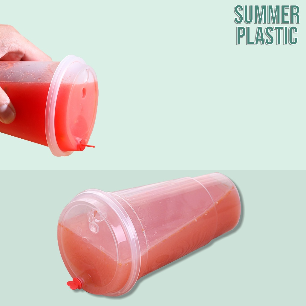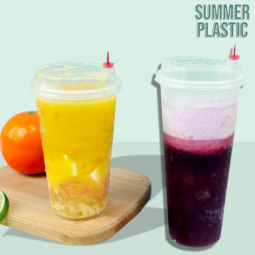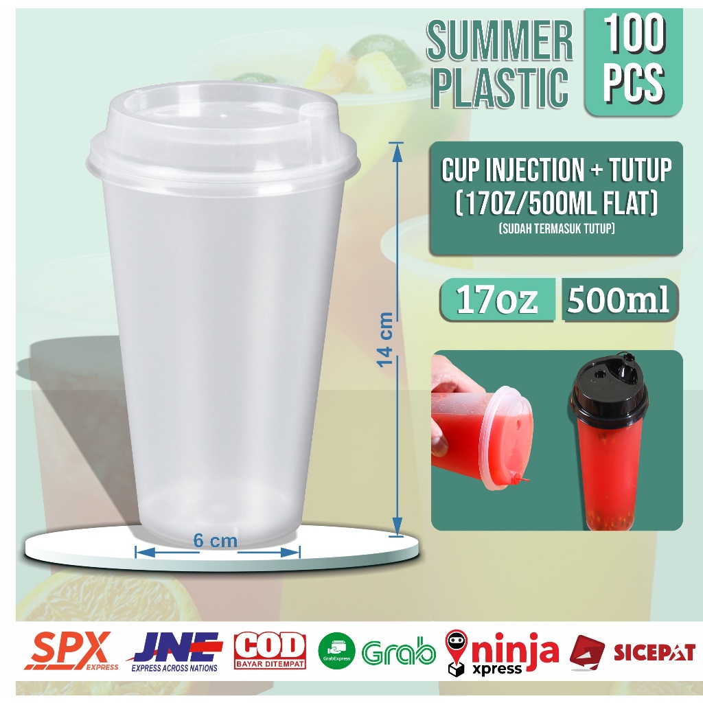 SUMMER PLASTIC 100PCS+TUTUP CUP INJECTION 17oz 500ML GELAS THINWALL / GELAS INJECT TUTUP KUAT ANTI TUMPAH / GELAS PREMIU
