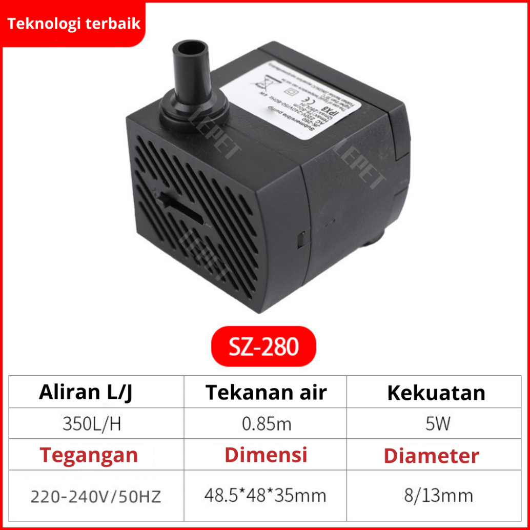 Lepet Pompa Celup Filter Aquarium Hidroponik Low Watt Sz180 Sz280