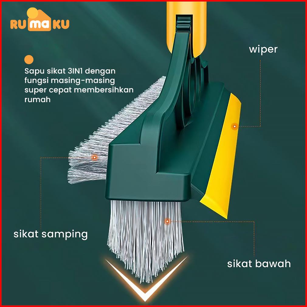 Rumaku Sikat Lantai Kamar Mandi Toilet 3 In 1 Sikat Pembersih Wc Praktis Multifungsi Serokan Air Gagang Panjang