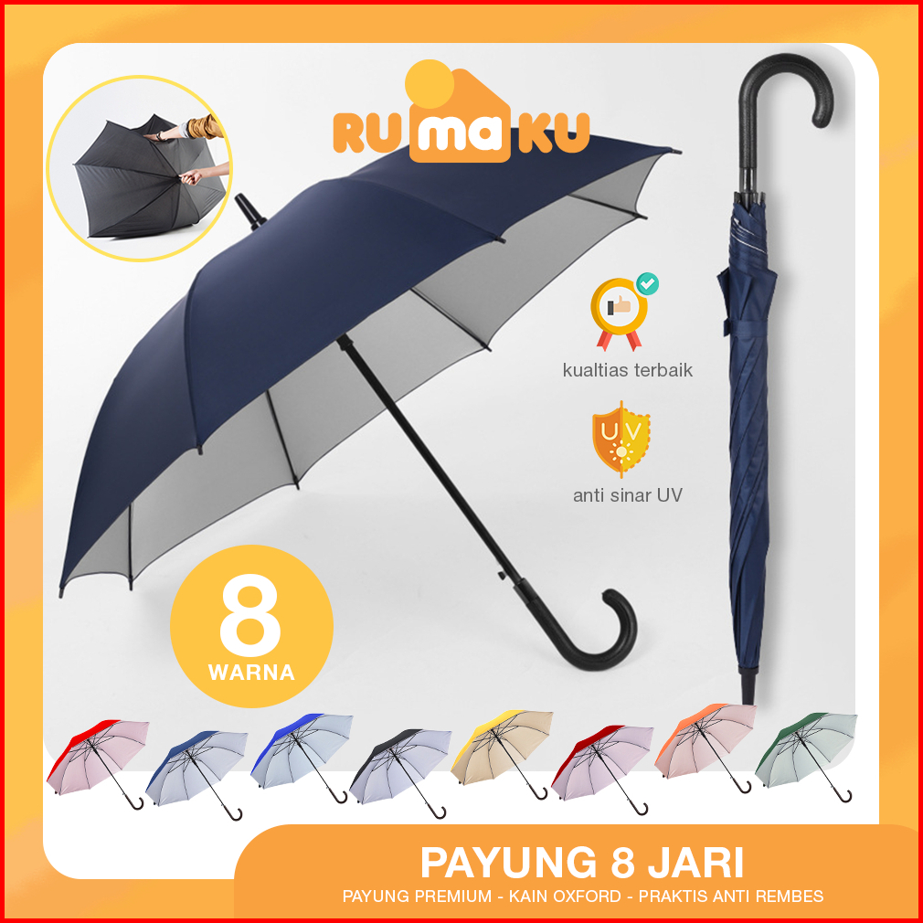 Rumaku Payung Jumbo Diameter 105 Cm Otomatis Motif Polos Rangka Kuat Kain Oxford Premium Anti Uv
