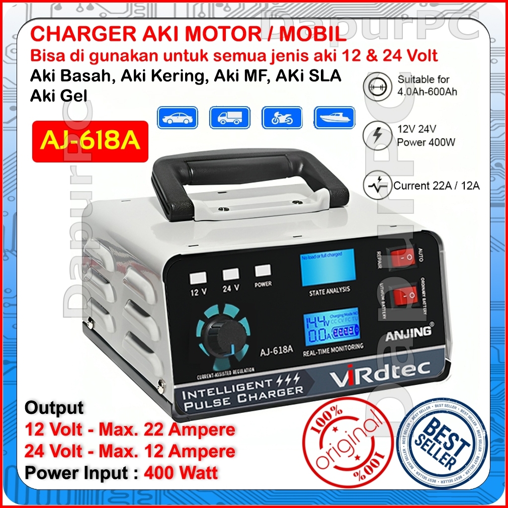 Charger Aki Aj-618a 12v 30 Ampere - 24v 15 Ampere Mobil Motor