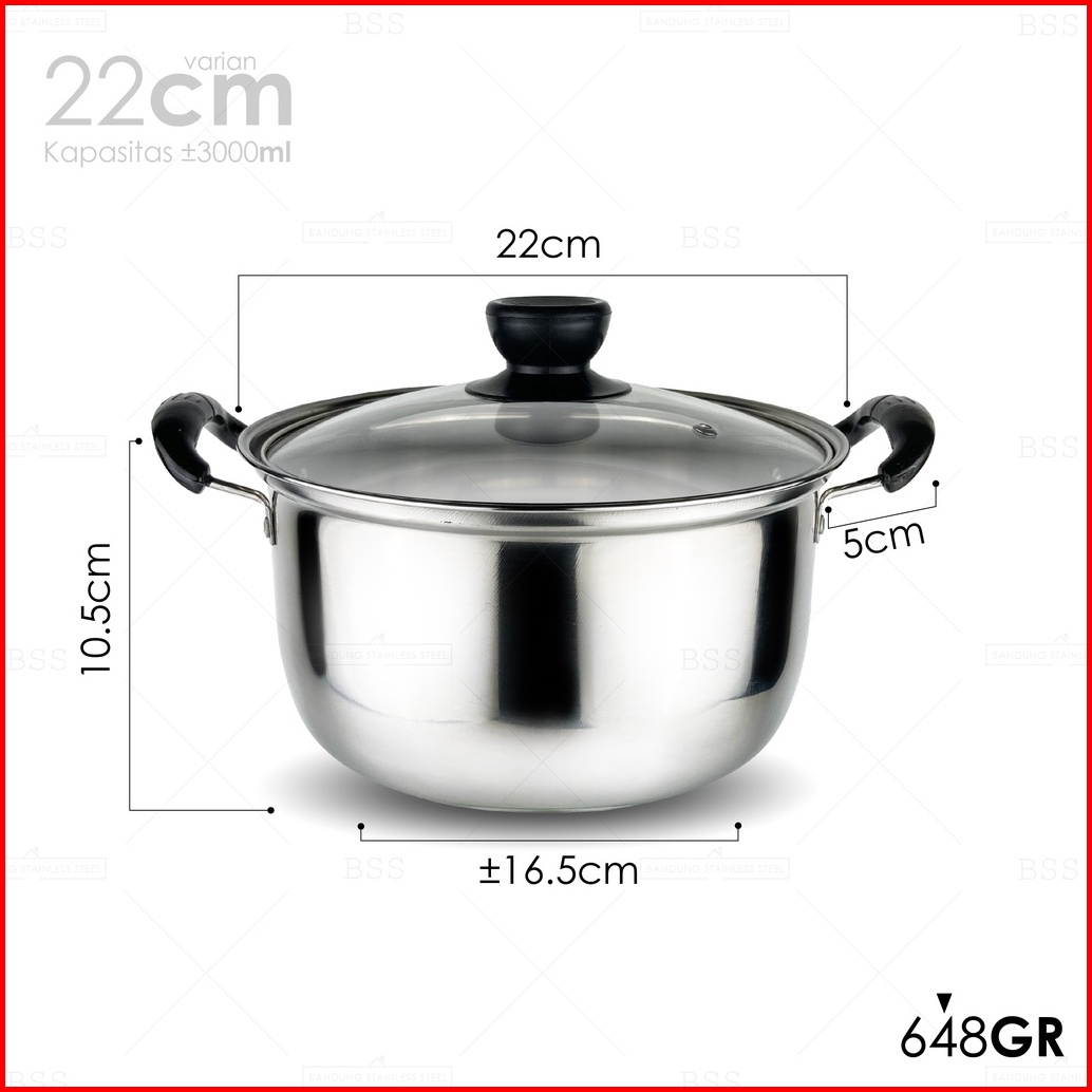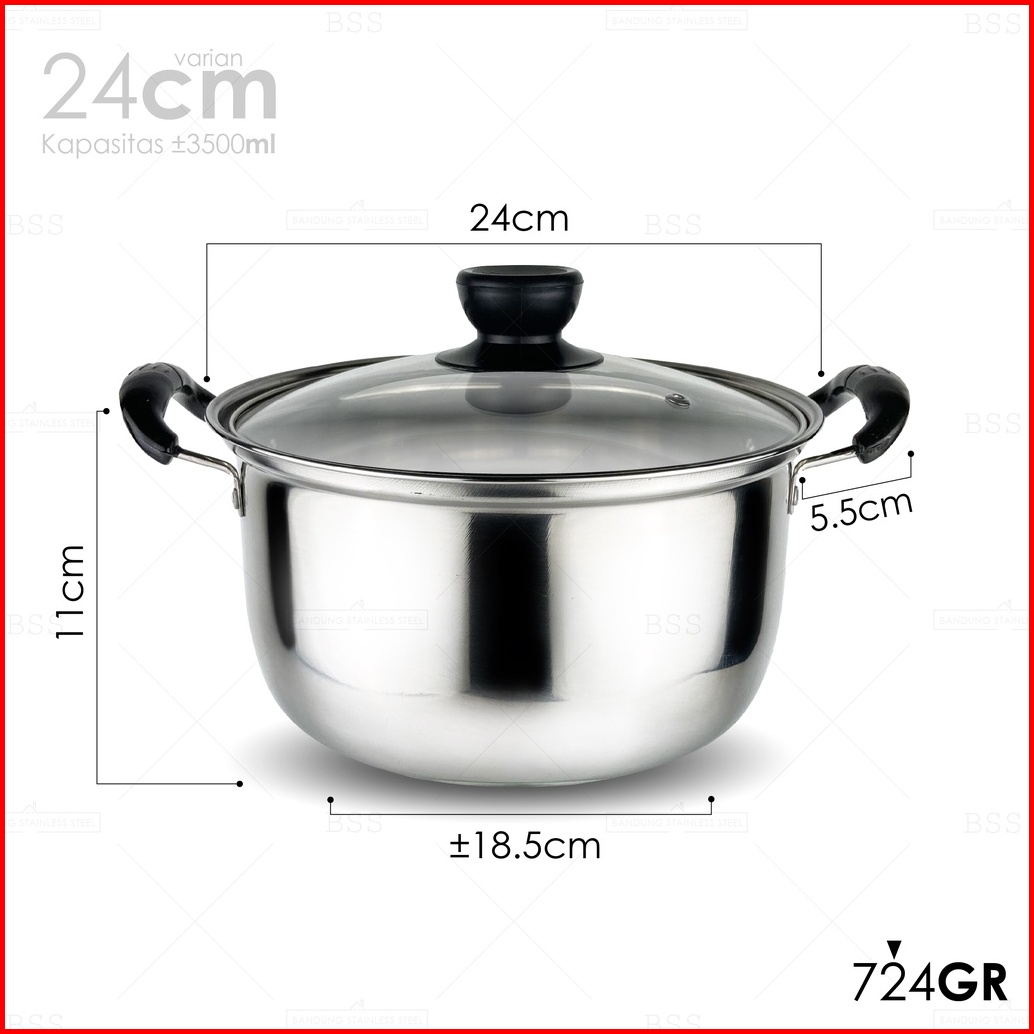 Soup Pot Panci Sup Sop 22cm 24cm Stainless Steel Tutup Kaca