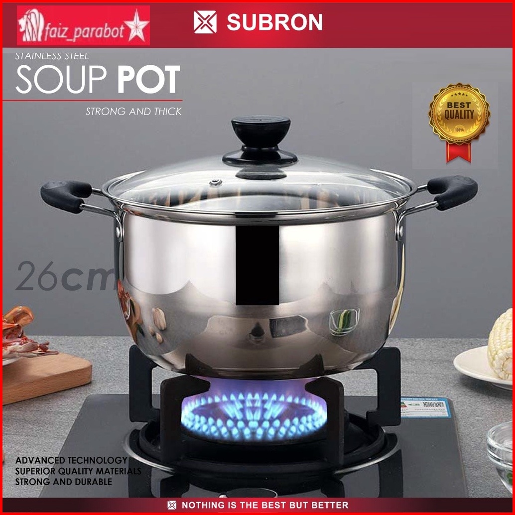 Yys 26cm-sup Panci Mie Susu Sayur Soup Soto Stainles 20 22 24cm Dengan Tutup Kaca