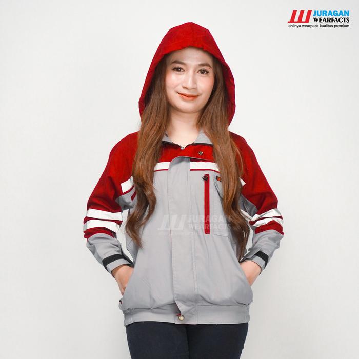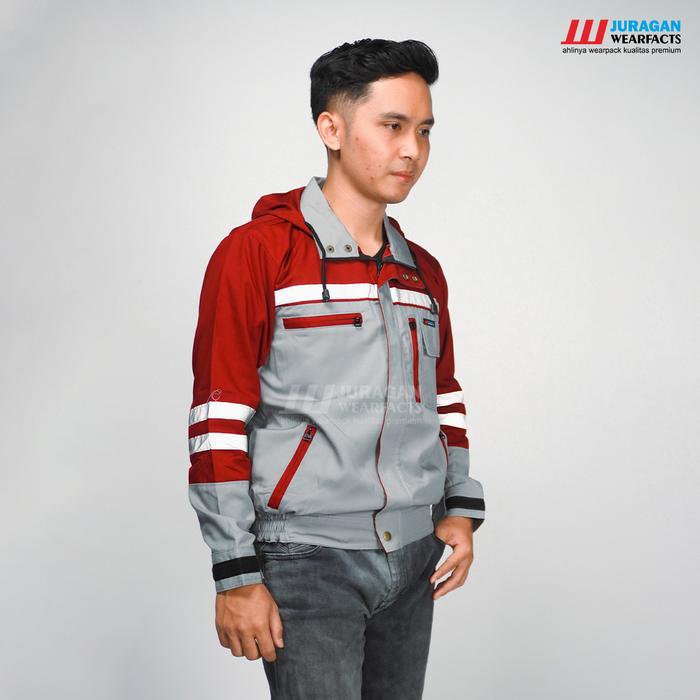 [] JAKET TAMBANG JAKET HOODIE BAJU WEARPACK KERJA SAFETY SERAGAM KERJA LAPANGAN PRYEK TAMBANG K3 PANJANG PRIA WANITA SEGALA CUACA WARNA MERAH MAROON KOMBINASI ABU - S