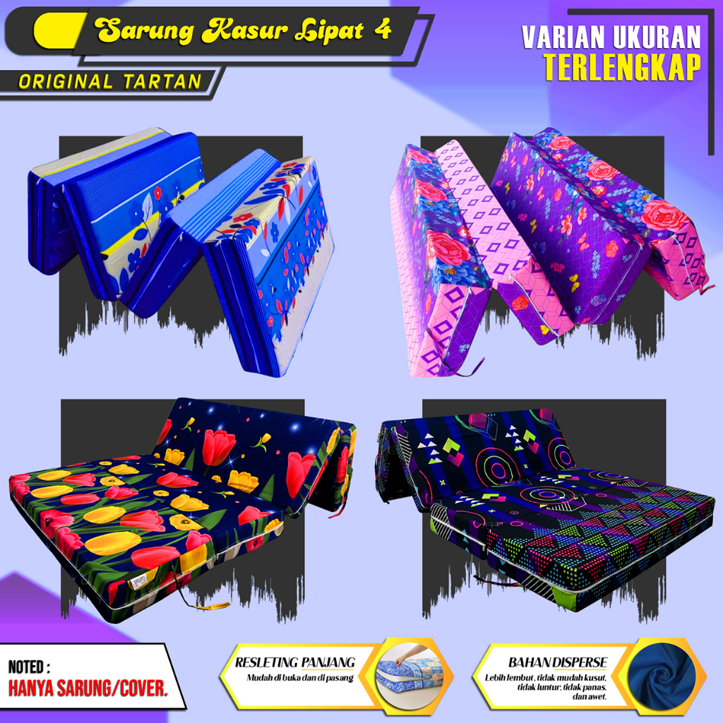 (HANYA SARUNG) Sarung Kasur Lipat 4 Resleting Bahan Disperse Ukuran Lengkap Murah Gratis Ongkir