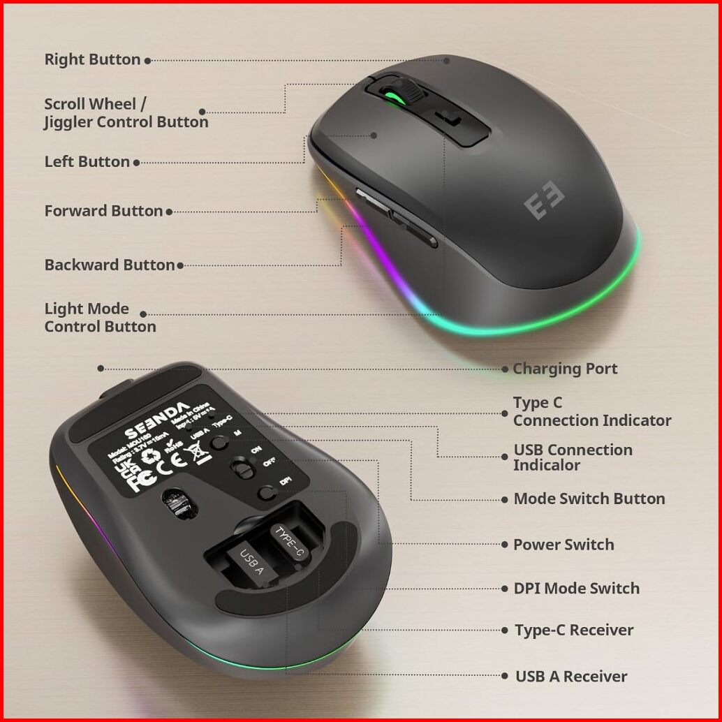 Seenda Mou160 Mouse Wireless Type C 2.4g Rechargeable Rgb Ergonomic Silent Click Jiggler