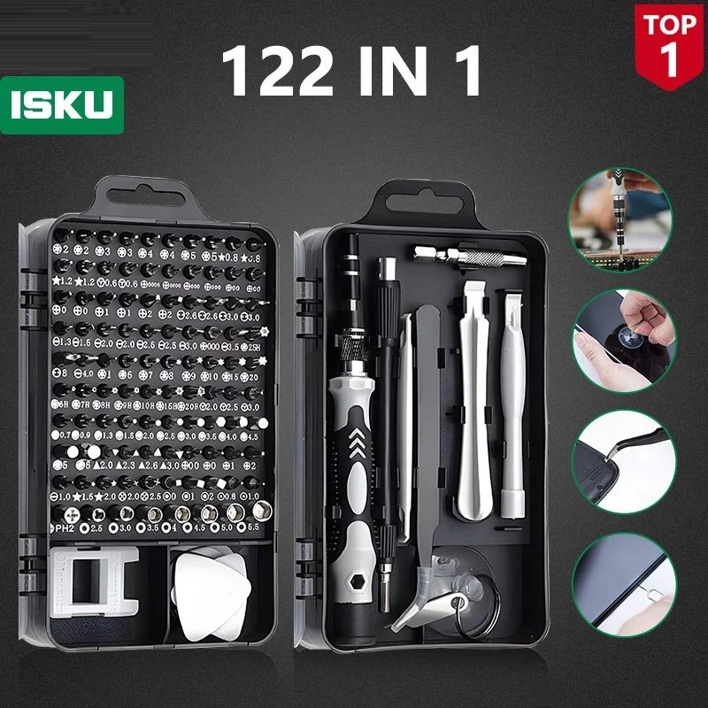 ISKU Obeng Set 122 In 1 Obeng Hp Multifungsi Alat Bongkar Mini Precision Untuk Phone Laptop Reparasi