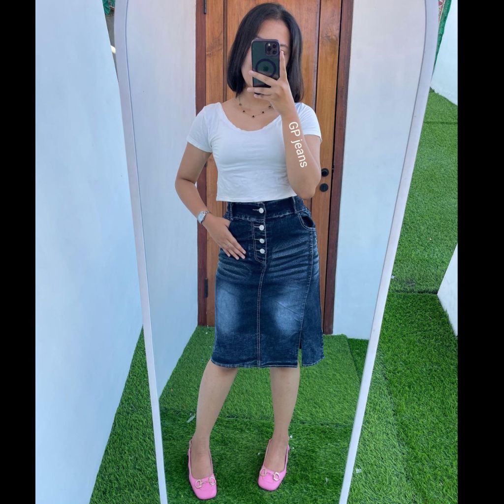Rok Jeans Pendek Wanita Cesa Pendek Rok Jeans Skirt Korean Style Wanita Kancing Karet Belah Samping Terbaru