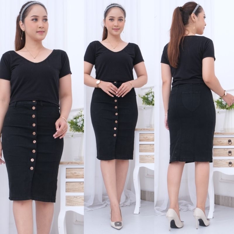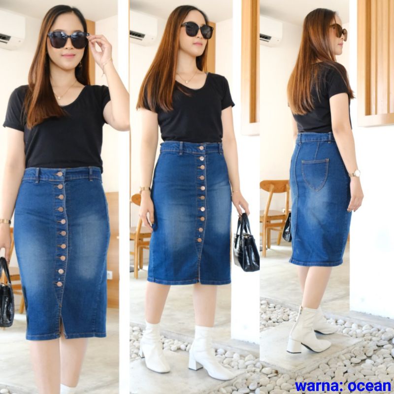 Rok Jeans Pendek Wanita Rok Jeans Span 7/8 Shelin Tebal Dan Stretch