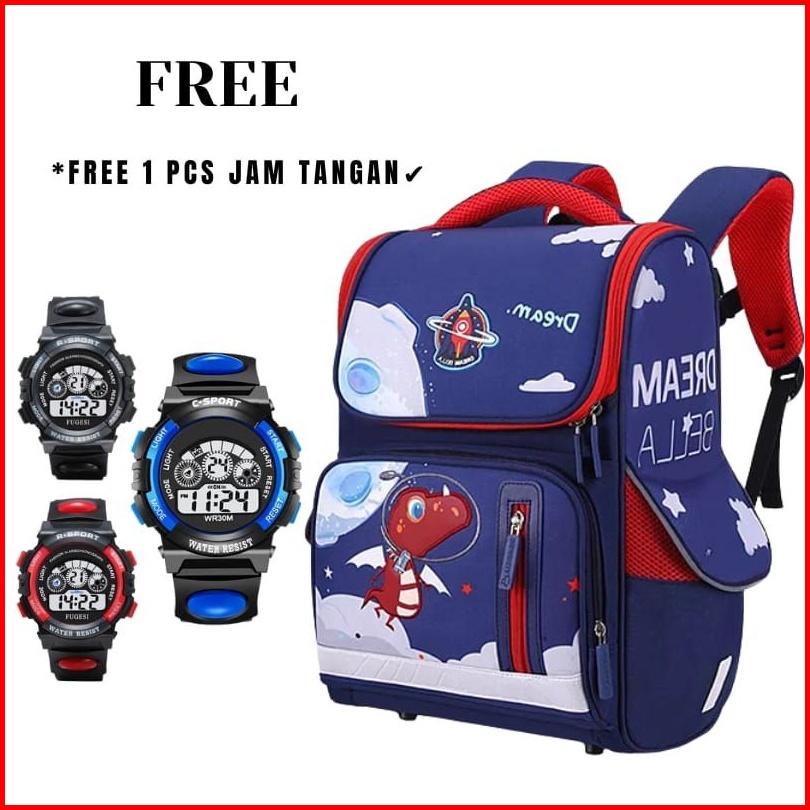 Tas Ransel Sekolah Anak-anak Dino Waterproof Untuk Anak Laki-laki Perempuan Ortopedia Desain Tas Ransel Sekolah Anak Tk