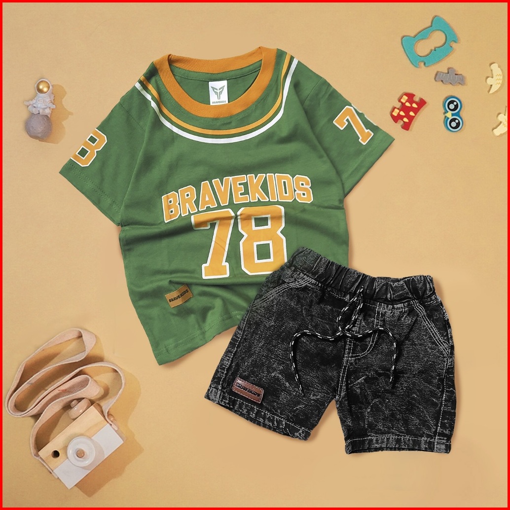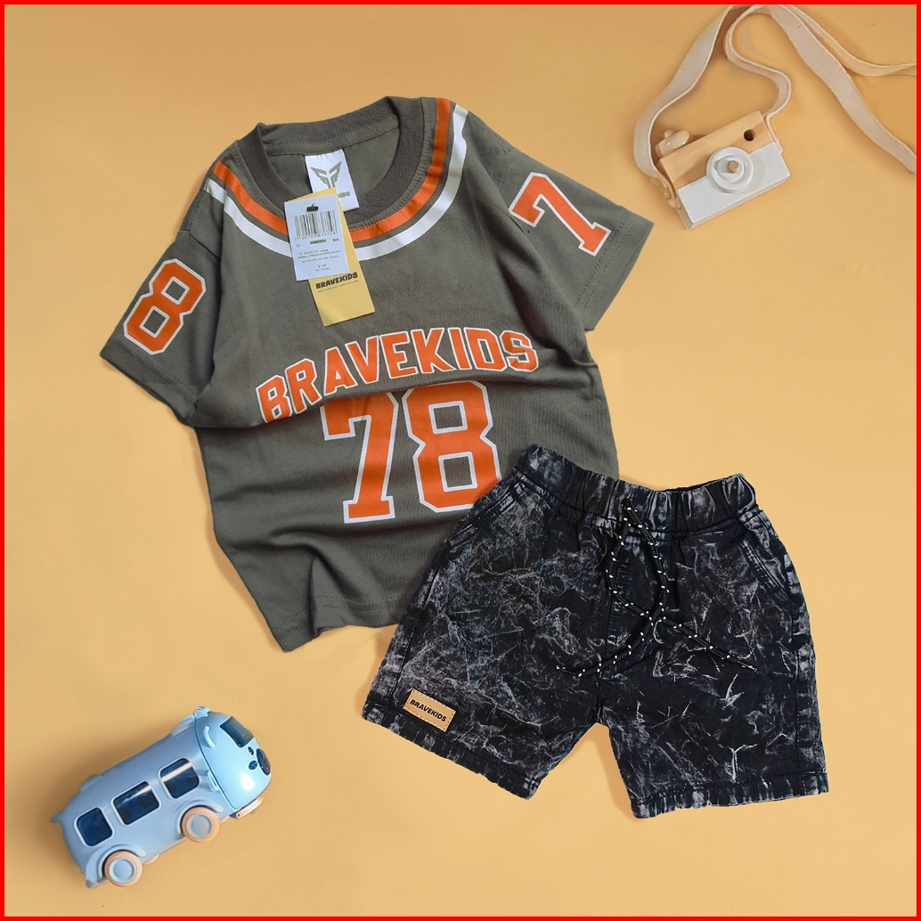 Bravekids Setelan T - Shirt Kaos Baseball Dan Celana Anak Cotton Combed 24s