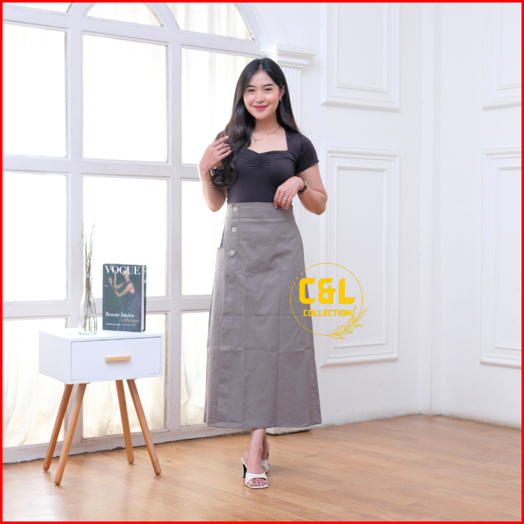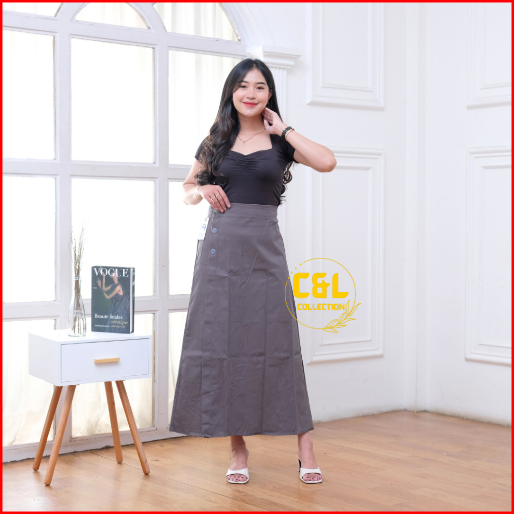 C L - Luna Skirt Rok Panjang Wanita Korean Style Standar Jumbo Katun Twill Combed