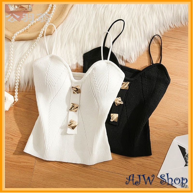 AJW Tank Top Korea Knit Kancing 3 Import Premium QAB | Tank Top Rajut Tali Spaghetti Kekinian | Tanktop Knit Vintage Sty
