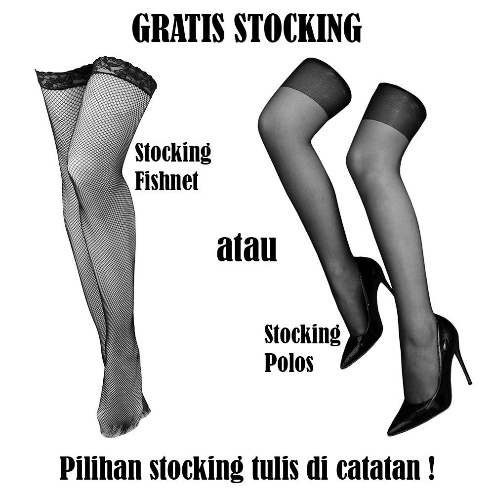 B306 Bra Set i Bikini Kawat Underwire Semi Open Cup Lace Hitam Dapat Stocking