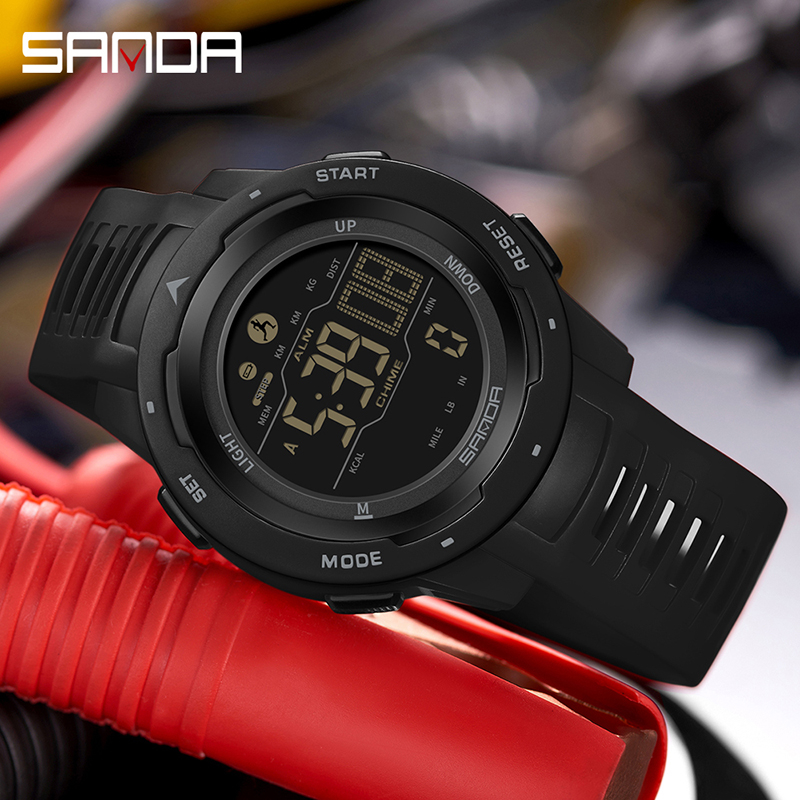 SANDA 2145 Jam Tangan Pria Digital Pedometer EL Backlight Sport Watch Shockproof Anti Air 5ATM CURRENOS