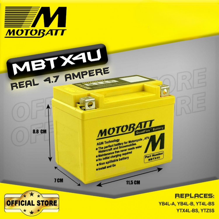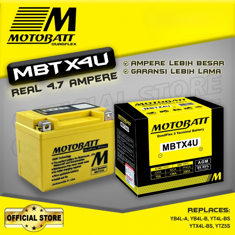 Aki Motor - Accu Aki Motor - Aki Kering Mottobatt - Aki Kering Motor - Motobatt Quadflex MBTX4U - 4.7Ah - Svo9