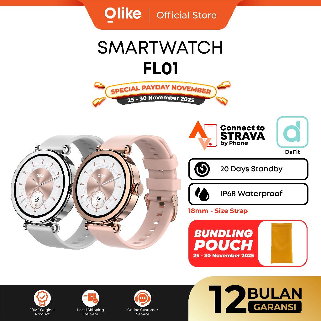 OLIKE Smart Watch Jam Tangan Wanita FL01 HD Display 1.27" Bluetooth Call Water Resistant IP68 Sport & Health Monitor