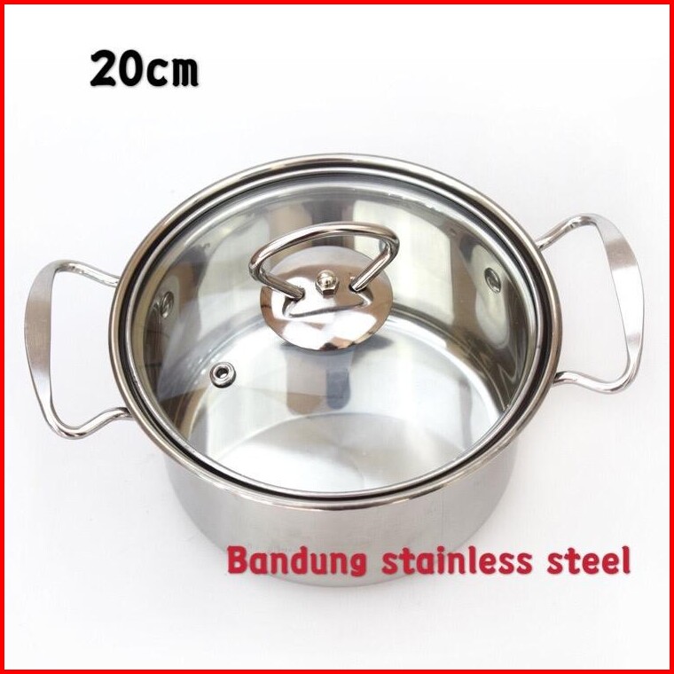 Panci Sup Soup Pot 20cm Stainless Steel Tutup Kaca Murah Kecil Gagang Stainless