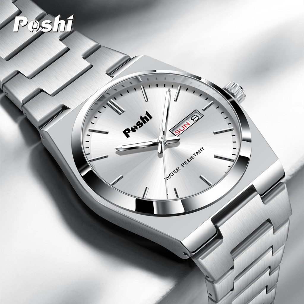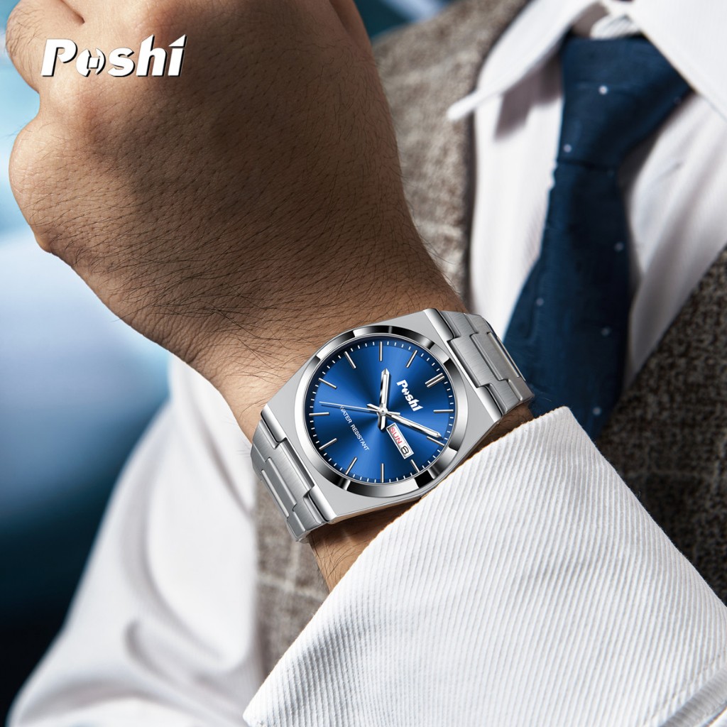 POSHI Jam Tangan Pria Fashion Kasual Bisnis Stainless Steel Quartz Calendar Anti Air Watch PS979