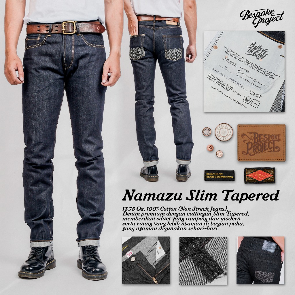 Bespoke Project - Celana Jeans pria Raw Denim Namazu Slim Tappered