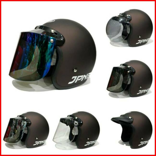 Helm&pet pet pendek, Helm&pet panjang, Kaca datar pelangi, Kaca datar silver, Kaca datar hitam, Kaca datar bening, Kaca cembung hitam, Kaca cembung bening, Helm Saja