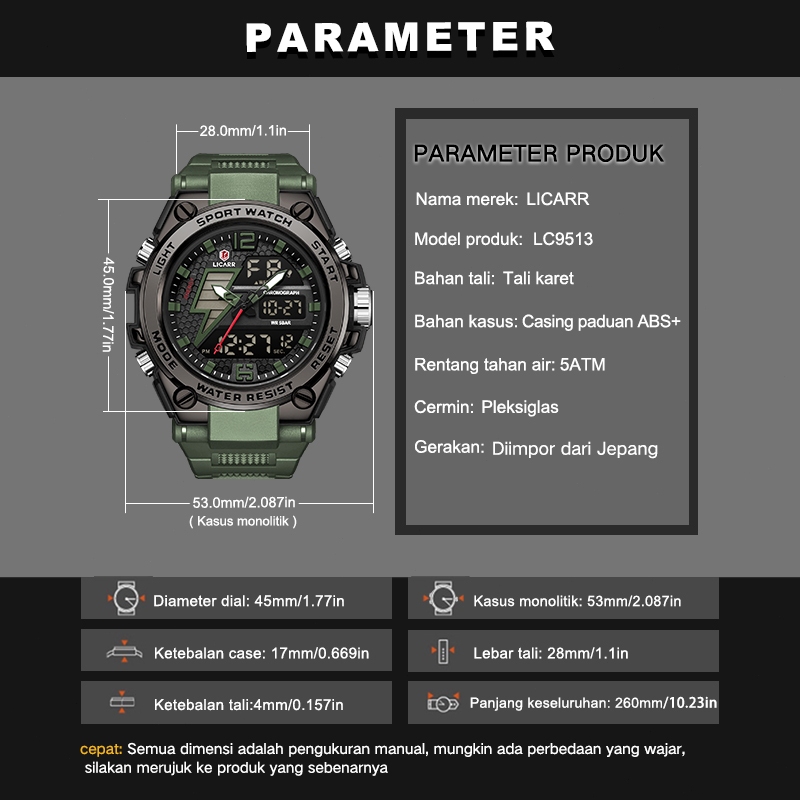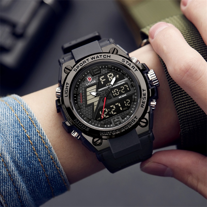 LICARR Jam Tangan Pria Merek Olahraga Analog Digital Fashion Kuarsa Anti Air Santai Jam Tangan Original Stopwatch 9513
