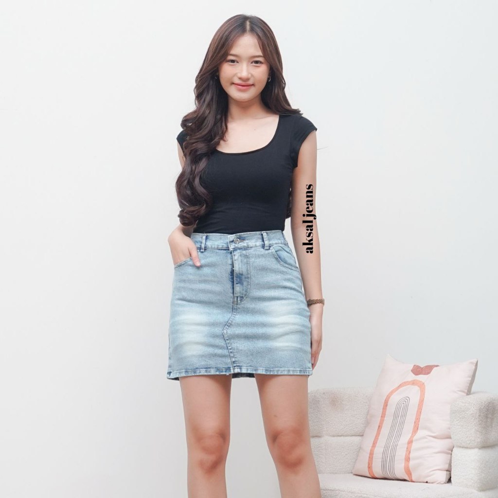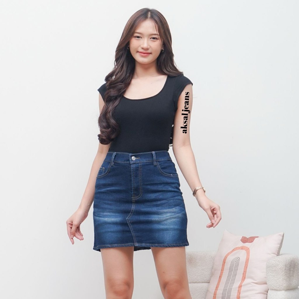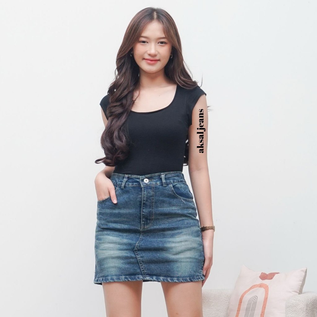 Rok Jeans Pendek Wanita Rok Jeans Skirt Pendek Mini Korean Style Kekinian Muat Bb 115 kg Model Terbaru Aksal Jeas