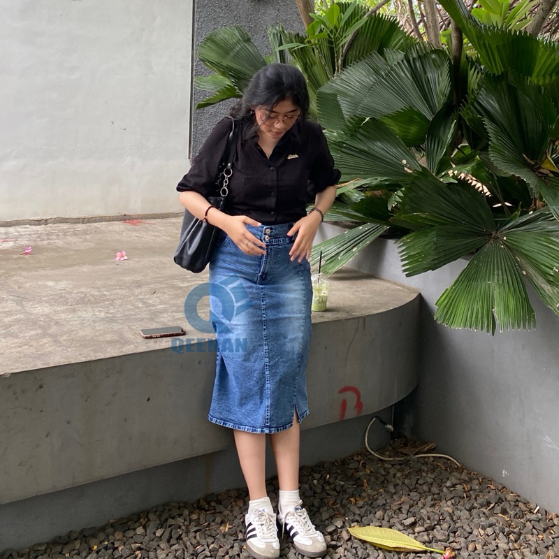 Rok Jeans Pendek Wanita QEENAN - Rok Jeans Pendek 7/8 Wanita Premium Quality