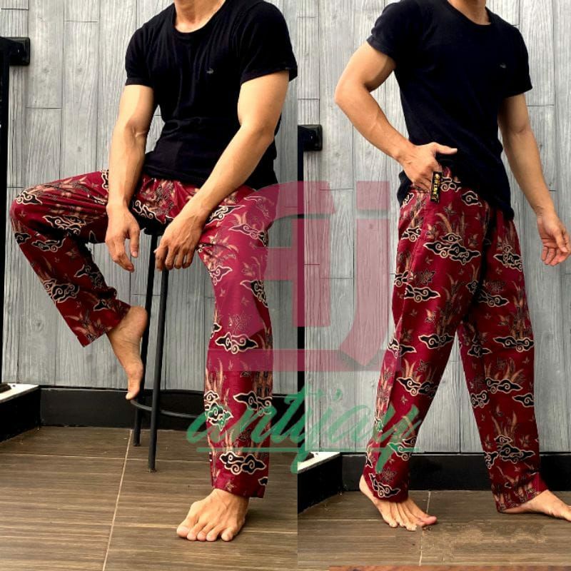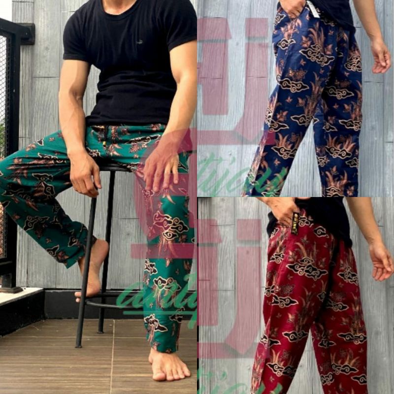 Celana Panjang Kolor Harian | Celana Batik Boim Santai Dewasa Pria Wanita Adem Motif Megamendung Warna Merah Biru Bahan