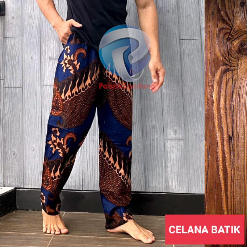 Celana batik untuk mudik short long pants kolor harian santai boim trendi saku panjang ukuran pria wanita dewasa pinggan