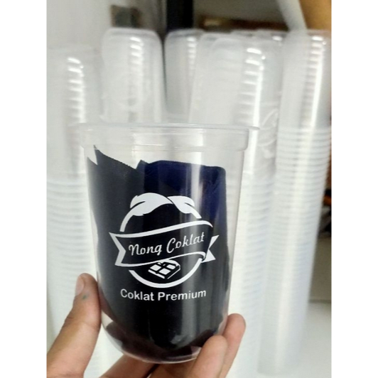 500 pcs Gelas Plastik Custom Cup Gelas Plastik Custom Sablon Printing 14 oval 16 oval 18 ozal 22 Oval Tebal