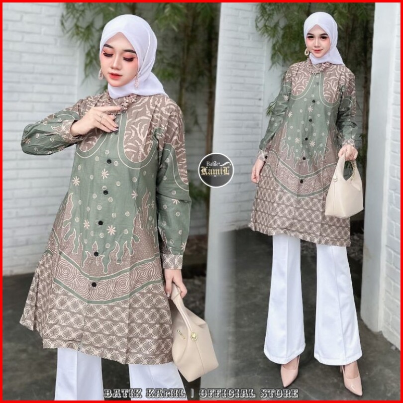Tunik Batik Wanita Modern Atasan Fashion Muslim Wanita Busui Friendly Baju Batik Wanita Terbaru