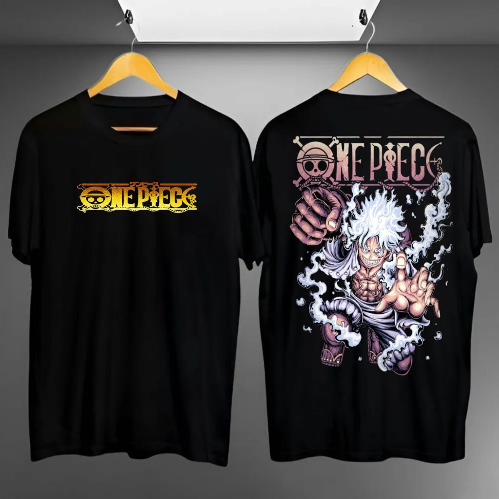 UNIQUESO - Kaos Distro Hitam Lengan Pendek Luffy One Piece Atasan Oblong Anime Pria Wanita Terkini