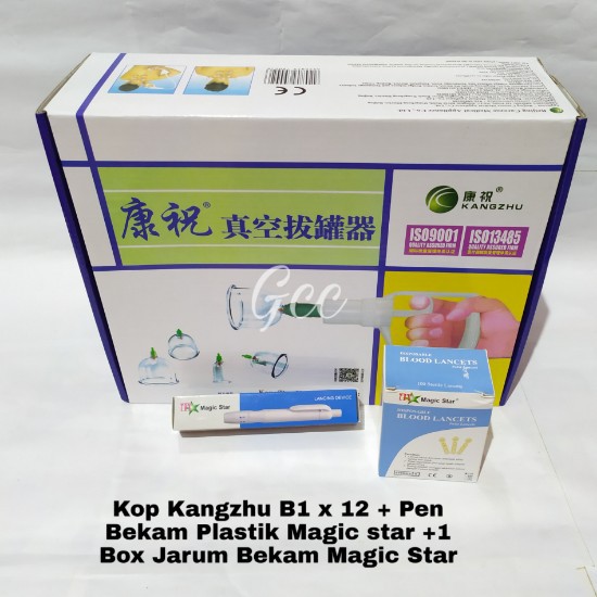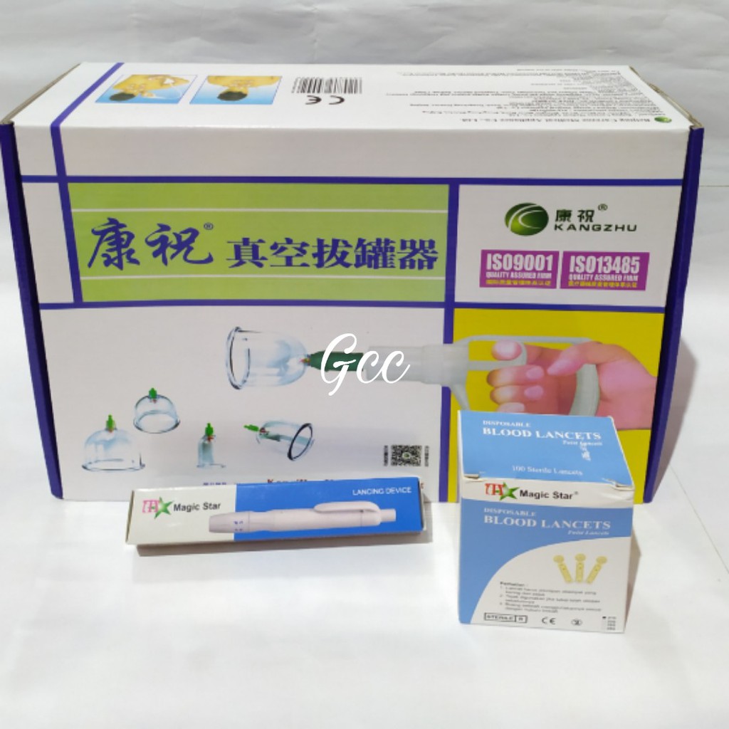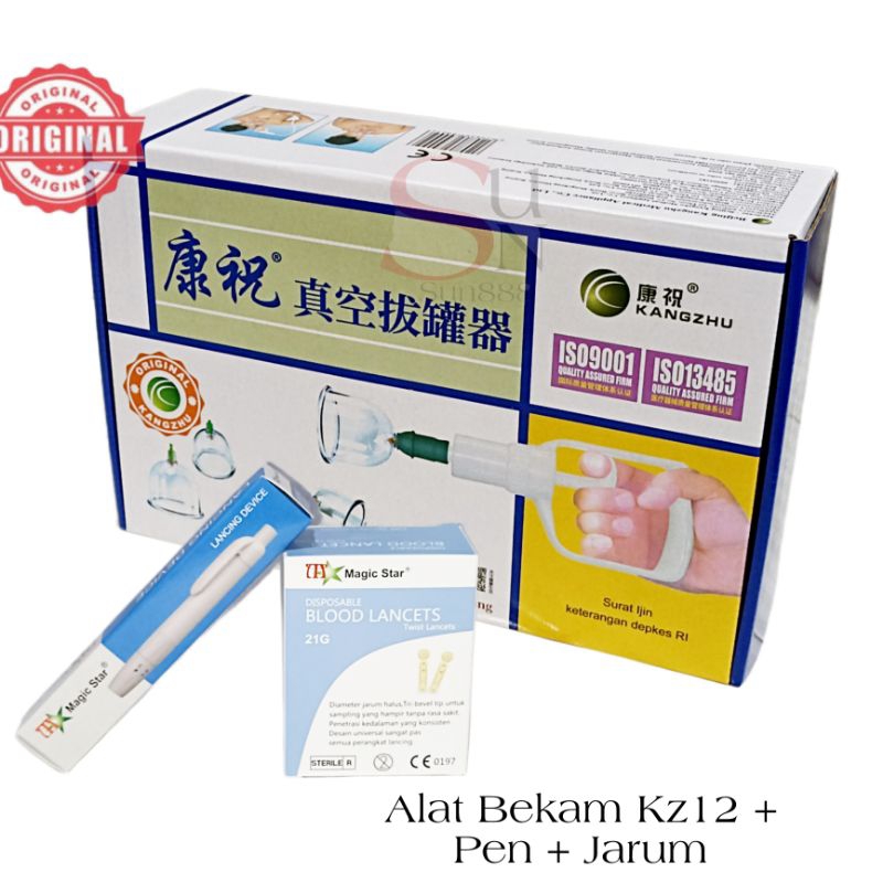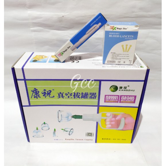 Alat Bekam Kangzhu Komplit Kop Isi 12 Lengkap Pena Dan Jarum 1Box Original Bahan Akrilik Tebal Anti Pecah